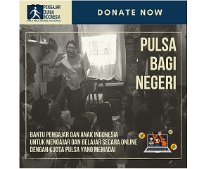 Mari bantu Para Pengajar dan Anak Indonesia untuk dapat belajar dan mengajar secara online dengan pulsa yang memadai.Get Involved